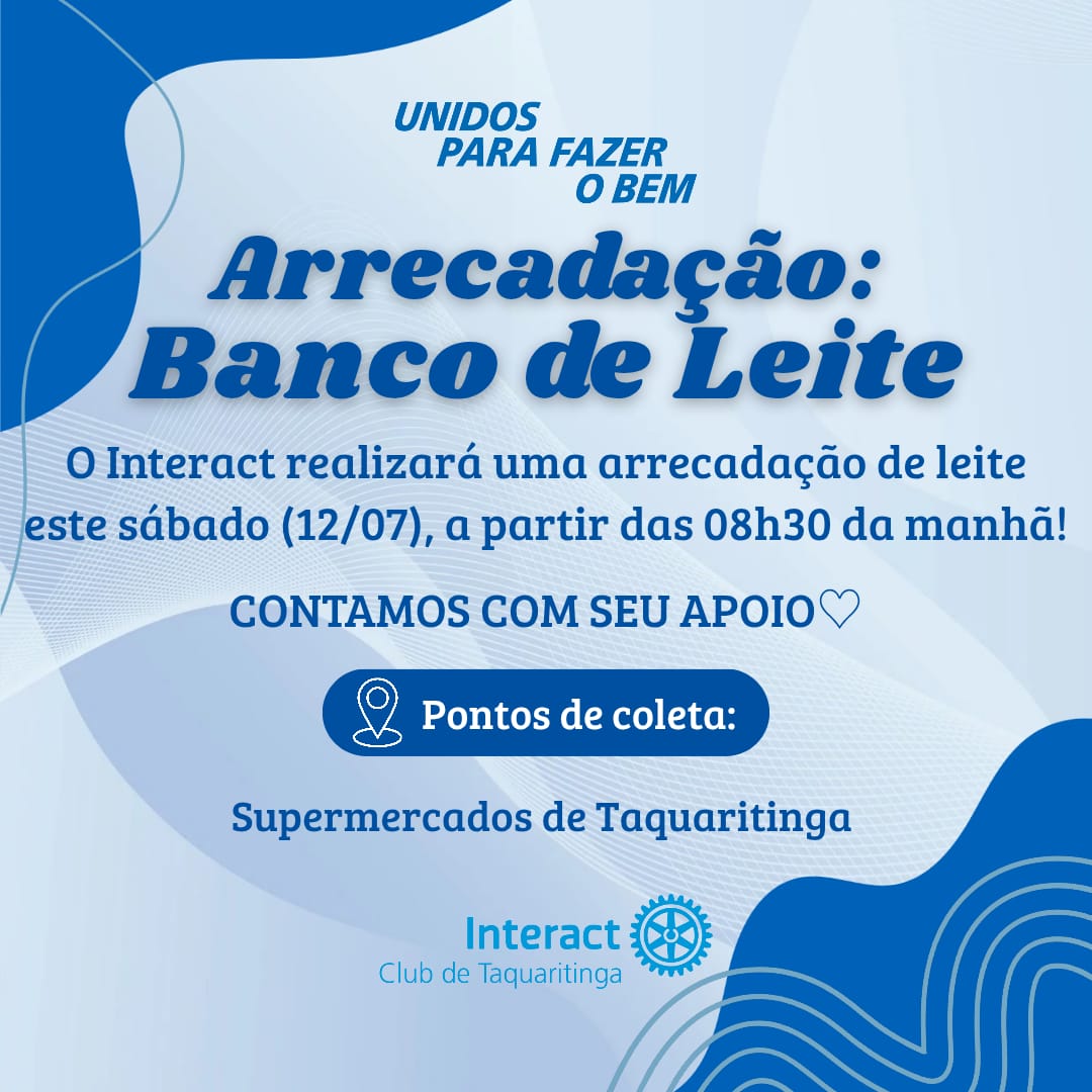 Neste sábado, 12 de julho, a solidariedade entra em ação nas ruas de Taquaritinga. O Interact Club, braço jovem do Rotary Internacional, promoverá uma grande campanha de arrecadação de leite, voltada ao fortalecimento do Banco de Leite e apoio direto a famílias em situação de vulnerabilidade social.