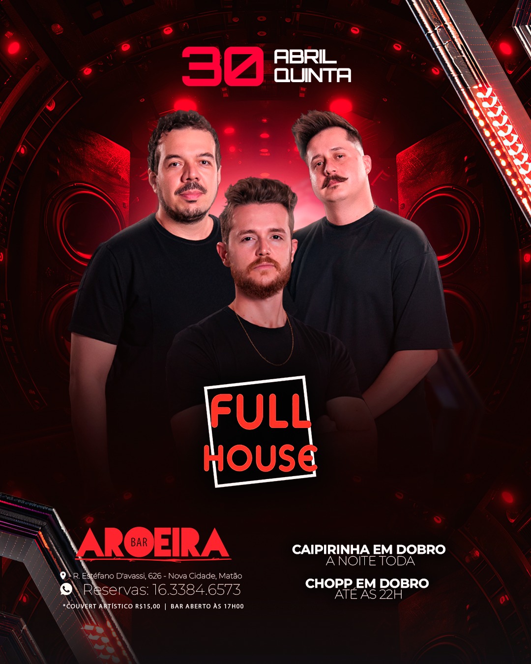 A agenda cultural da região ganha destaque no fim de abril e início de maio com a realização de shows musicais em bares de Matão e Taquaritinga, reunindo público em torno de apresentações ao vivo e promoções voltadas ao entretenimento noturno. A banda Full House é a principal atração confirmada em dois eventos consecutivos, consolidando sua presença no circuito local.