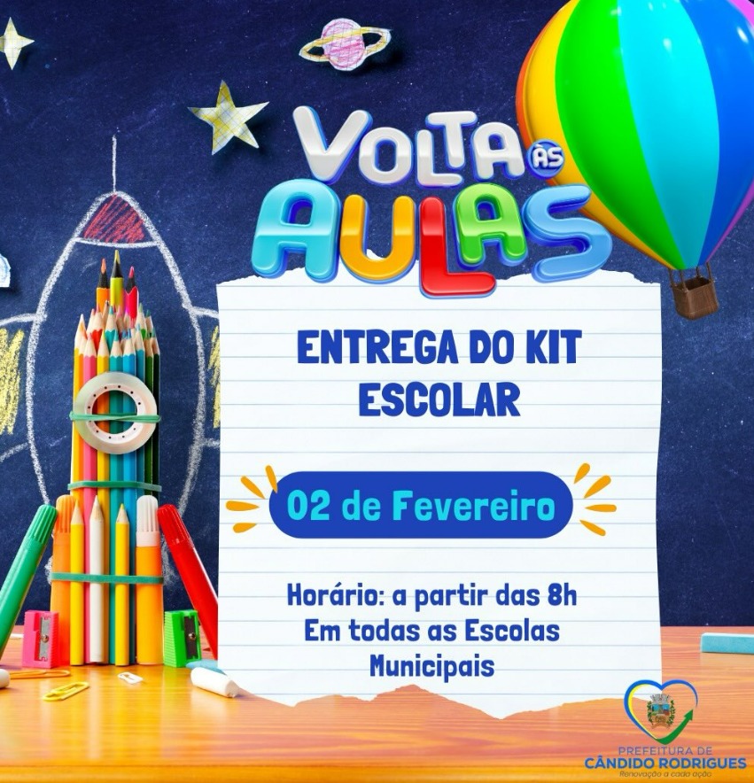 A Prefeitura de Cândido Rodrigues anunciou que todos os alunos da Rede Pública Municipal de Ensino receberão kits completos de material escolar no início do ano letivo de 2026. A entrega está programada para o dia 2 de fevereiro, a partir das 8h, em todas as escolas municipais, garantindo que crianças e adolescentes iniciem as aulas com os recursos necessários para o desenvolvimento pedagógico.