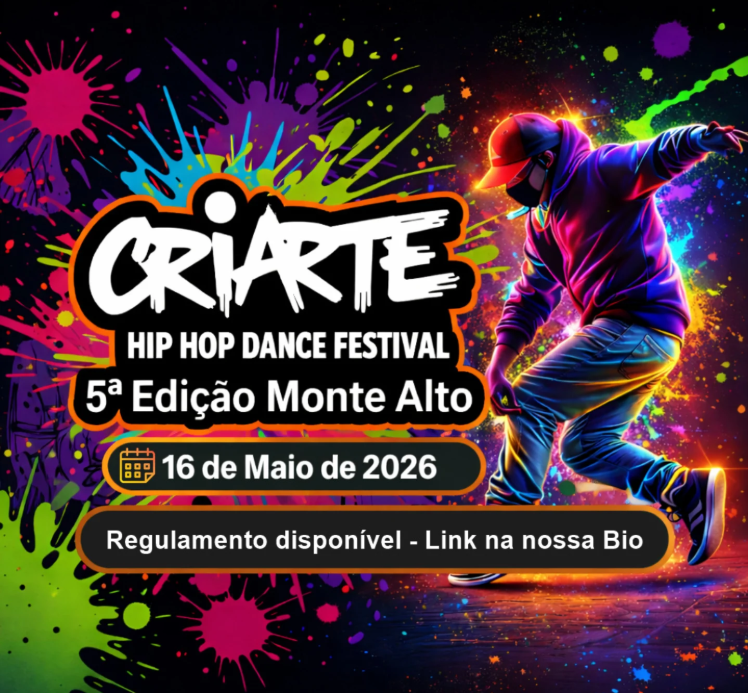 A cidade de Monte Alto se prepara para sediar, no próximo dia 16 de maio de 2026, a 5ª edição do Criarte Hip Hop Dance Festival, evento que vem se consolidando como um importante espaço de valorização das danças urbanas e da expressão artística na região. Com inscrições já abertas, o festival promete reunir dançarinos, grupos e entusiastas da cultura hip hop em uma programação que alia competição, aprendizado e troca cultural.