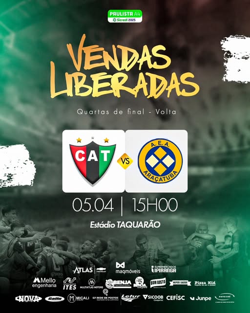 Agora, cabe ao torcedor fazer a diferença nas arquibancadas do Taquarão. A atmosfera promete ser de festa, garra e determinação, ingredientes essenciais para um duelo que pode marcar a trajetória do CAT na competição. O chamado está feito: é hora de vestir as cores do Leão e empurrar o time rumo à semifinal. Avante, CAT! 🦁