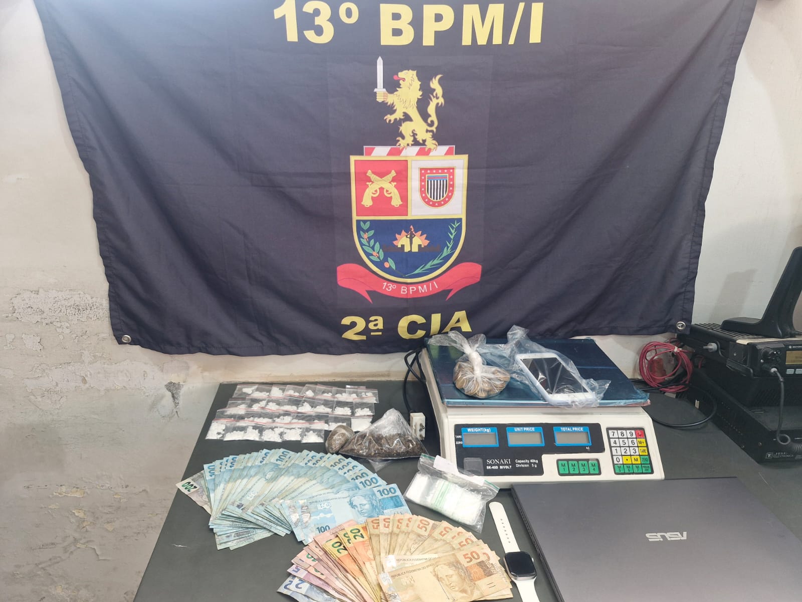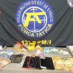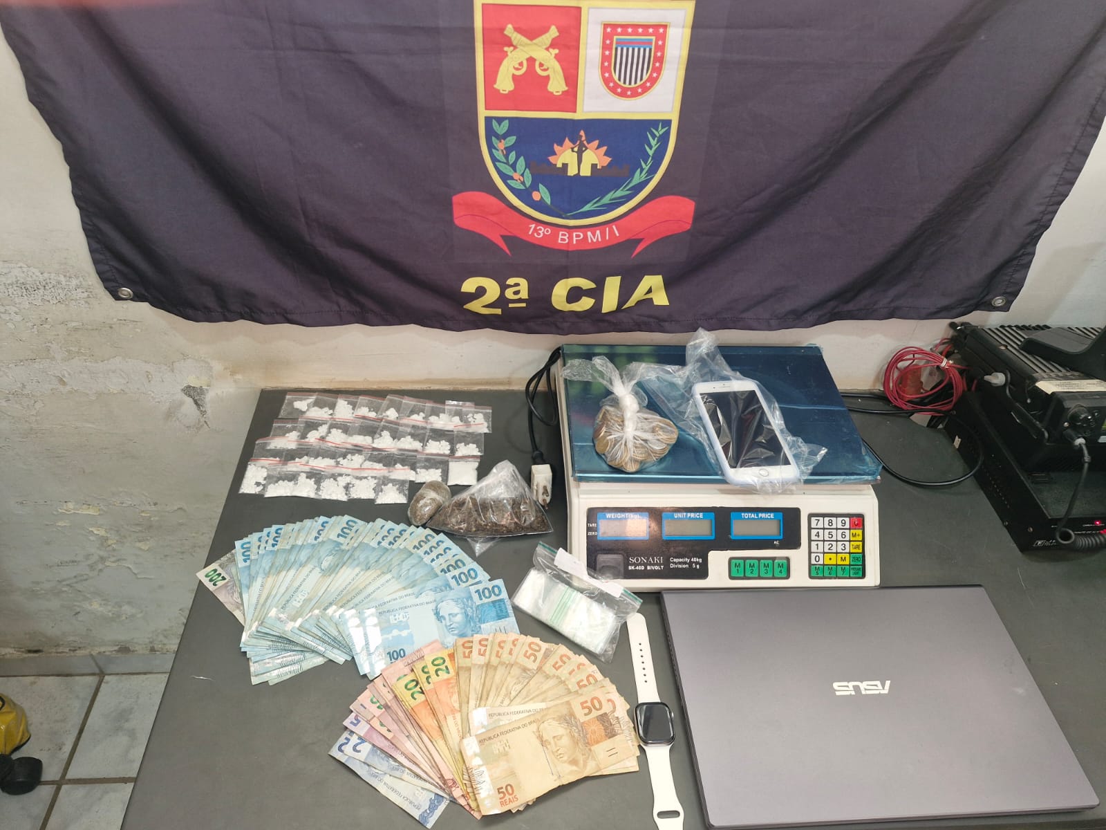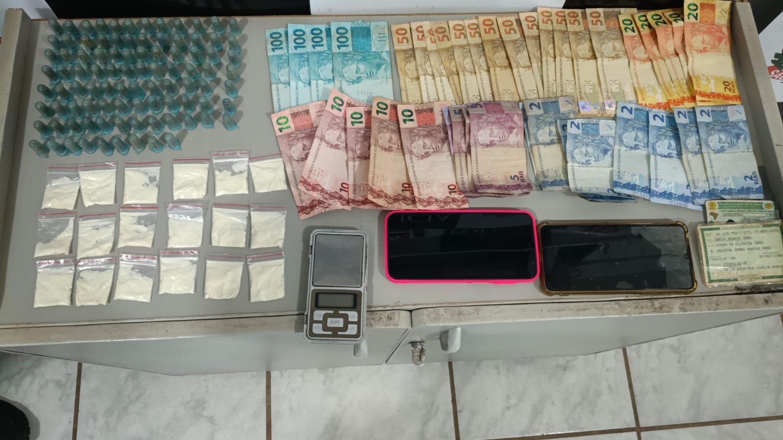 A operação também resultou na apreensão de 15 aparelhos celulares, quatro balanças de precisão, dois notebooks e uma máquina de cartão, itens que podem indicar a estrutura organizada da atividade criminosa. Ainda foram recolhidos dois relógios, além de um veículo e uma motocicleta, que serão analisados quanto à possível utilização em práticas ilícitas.