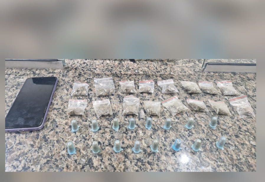 Durante a busca pessoal, os policiais encontraram em posse do jovem um celular Samsung A05 de cor lilás. Já no invólucro descartado, os agentes localizaram 16 porções de maconha embaladas em saquinhos zip lock e 16 eppendorfs com maconha do tipo K3, totalizando 42 gramas da droga.
