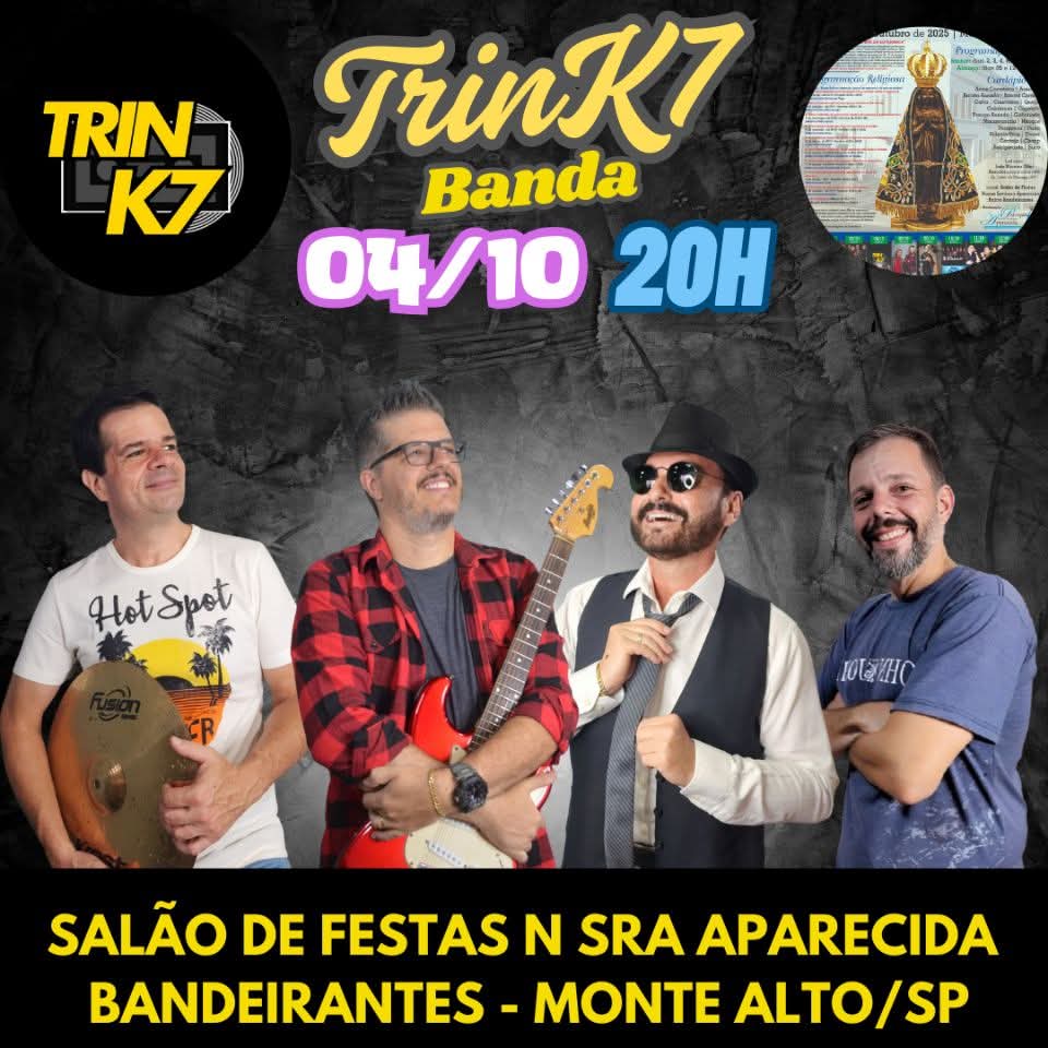 Para a banda TrinK7, participar dessa celebração é motivo de orgulho e responsabilidade. “É uma honra poder levar nossa música a uma festa tão significativa, que une fé, tradição e alegria. Esperamos retribuir todo o carinho da comunidade com uma apresentação especial”, destacaram os músicos.