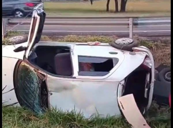 De acordo com informações preliminares, o automóvel seguia pela via de acesso quando, por motivos ainda não esclarecidos, o motorista perdeu o controle da direção, resultando no tombamento do carro na pista. Com o impacto, uma das passageiras sofreu ferimentos e precisou de atendimento de emergência.