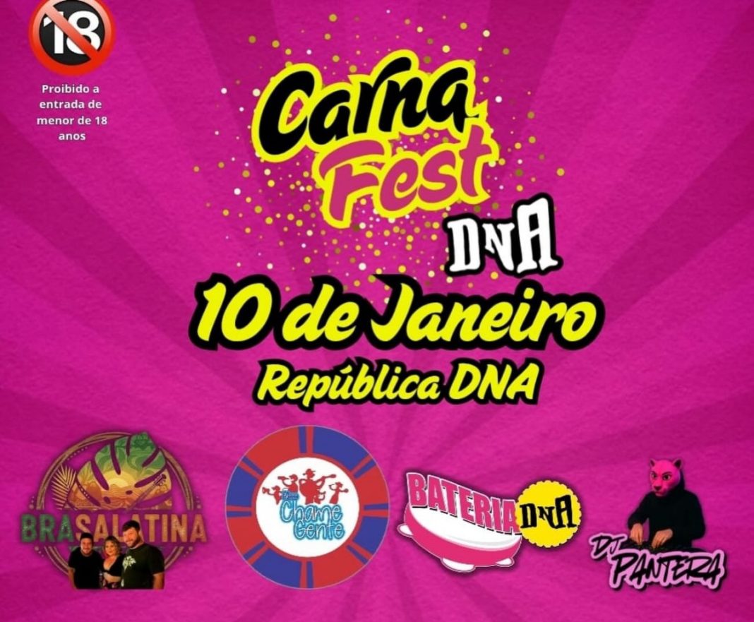 O calendário cultural de Taquaritinga ganha destaque no início de 2026 com a realização do Carna Fest DNA, evento programado para o dia 10 de janeiro, na República DNA, espaço conhecido por receber festas voltadas ao público jovem e adulto. Conforme a organização, a proposta é oferecer uma noite de integração, música e entretenimento, reunindo diferentes estilos e artistas em um mesmo palco, respeitando a classificação etária, que proíbe a entrada de menores de 18 anos.
