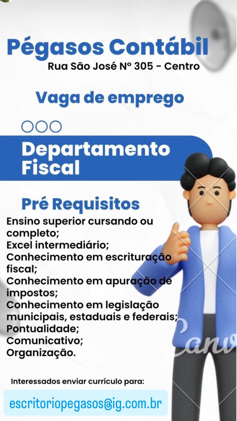 A Pégasos Contábil, localizada no Centro de Taquaritinga, está com uma excelente oportunidade de emprego em aberto. A empresa anuncia a vaga para o Departamento Fiscal, visando ampliar sua equipe com profissionais qualificados e comprometidos.