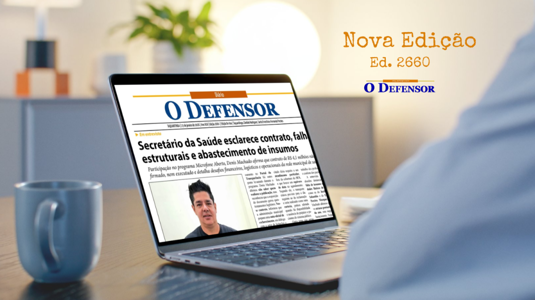 TOP 5 DESTA SEMANA Melhorias: Prefeitura de Taquaritinga entrega novos uniformes a agentes do DEMCOVE e reforça combate a endemias Cidade Jornal O Defensor - 30 de abril de 2026 Saúde das crianças: Novo espaço de treino funcional infantil, “Kids em Ação”, será inaugurado em Taquaritinga Cidade Jornal O Defensor - 30 de abril de 2026 Agrishow 2026: Governo de SP anuncia pacote de R$ 455 milhões para impulsionar o agro paulista Geral Jornal O Defensor - 30 de abril de 2026 Em Taquaritinga: Dr. Fúlvio articula parceria com InvestSP para atrair empresas e impulsionar empregos Cidade Jornal O Defensor - 30 de abril de 2026 Fluxo livre: Governo suspende 3,4 milhões de multas em pedágios free flow e concede prazo para regularização Geral Jornal O Defensor - 30 de abril de 2026 Notícias Relacionadas Melhorias: Prefeitura de Taquaritinga entrega novos uniformes a agentes do DEMCOVE e reforça combate a endemias Cidade Saúde das crianças: Novo espaço de treino funcional infantil, “Kids em Ação”, será inaugurado em Taquaritinga Cidade Agrishow 2026: Governo de SP anuncia pacote de R$ 455 milhões para impulsionar o agro paulista Geral Em Taquaritinga: Dr. Fúlvio articula parceria com InvestSP para atrair empresas e impulsionar empregos Cidade Fluxo livre: Governo suspende 3,4 milhões de multas em pedágios free flow e concede prazo para regularização Geral Artigo: A venda do emagrecimento ‘milagroso’ em Taquaritinga Artigo / Crônica / Poemas Jornal O Defensor – 23 de janeiro de 2026 – Versão Digital GeralÚltimas 22 de janeiro de 2026 Menos de min.leitura Leia a mais nova edição do Jornal O Defensor! Artigo anteriorEm Taquaritinga: Paróquia de São Sebastião realiza Santa Missa de Envio para seminaristaPróximo artigoIniciativas: Reunião na Câmara discute ações integradas para redução da população em situação de rua