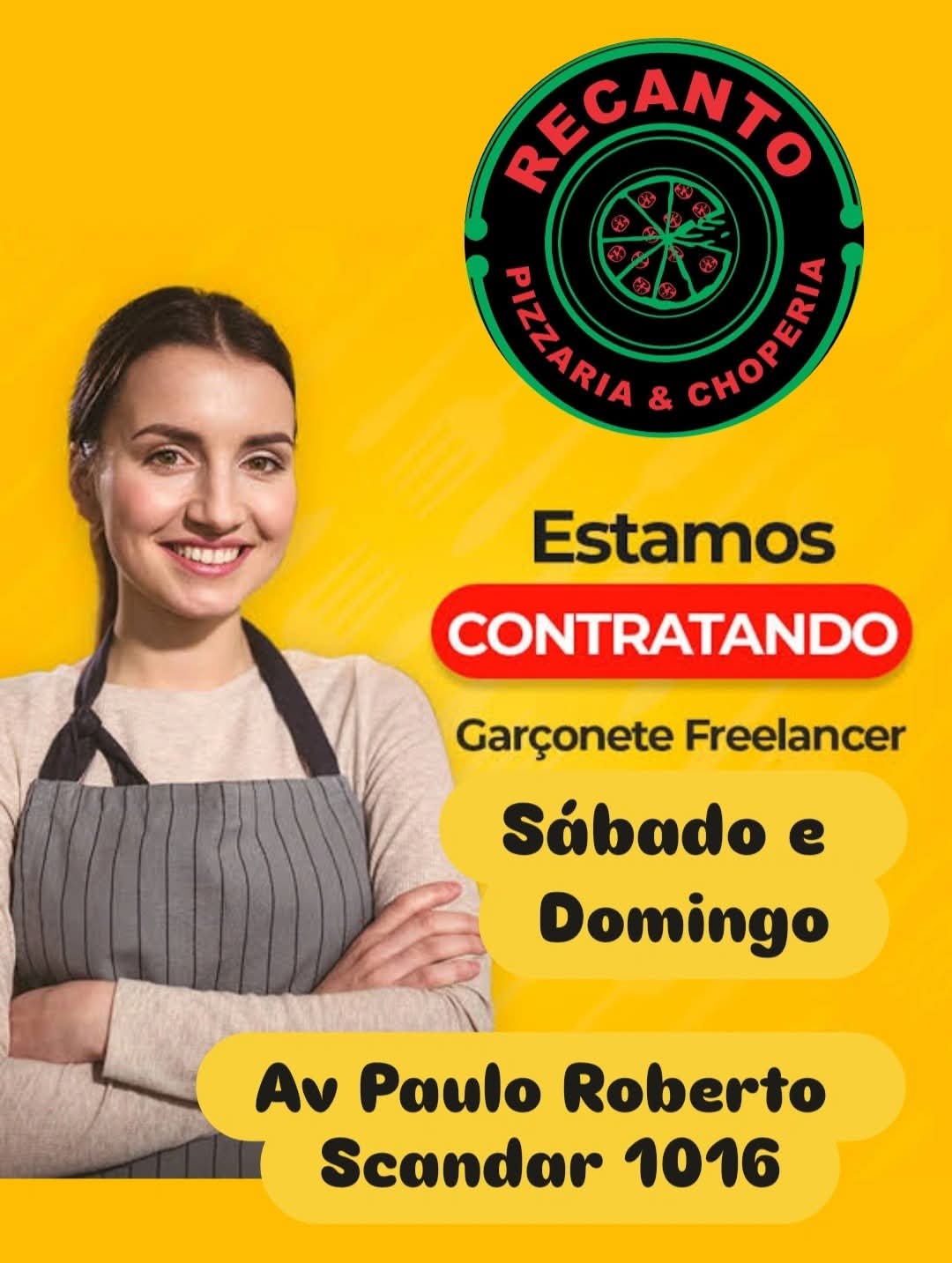 A Recanto Pizzaria & Choperia, tradicional estabelecimento gastronômico de Taquaritinga, anunciou a abertura de uma vaga para garçonete freelancer. A contratação é voltada para atuação aos sábados e domingos, com o objetivo de reforçar a equipe durante os dias de maior movimento na casa.
