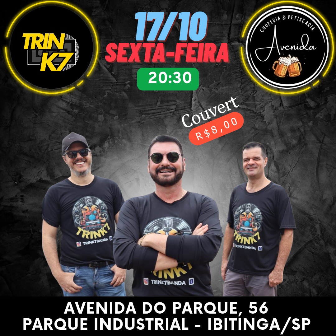 A cidade de Ibitinga se prepara para uma noite de muita música e descontração. Nesta sexta-feira, 17 de outubro, a banda TrinK7 se apresenta na Choperia & Petiscaria Avenida, localizada na Avenida do Parque, 56, no Parque Industrial, a partir das 20h30. O show integra a programação cultural do espaço e promete uma performance vibrante, com sucessos que marcaram gerações.