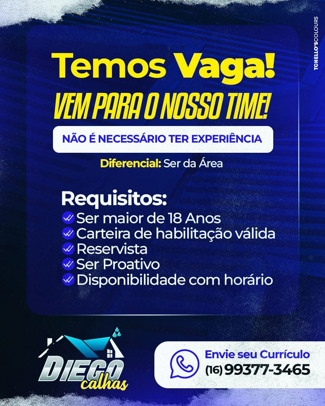 A Diego Calhas, conhecida pela qualidade de seus serviços e atendimento personalizado, reforça que a contratação visa fortalecer sua equipe técnica e acompanhar o aumento da demanda por obras e manutenções residenciais e comerciais na cidade.