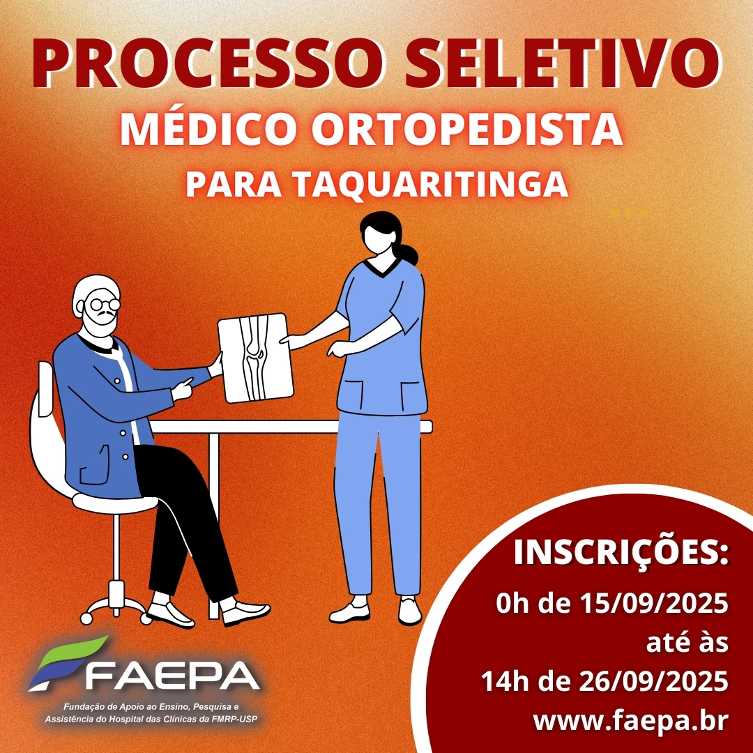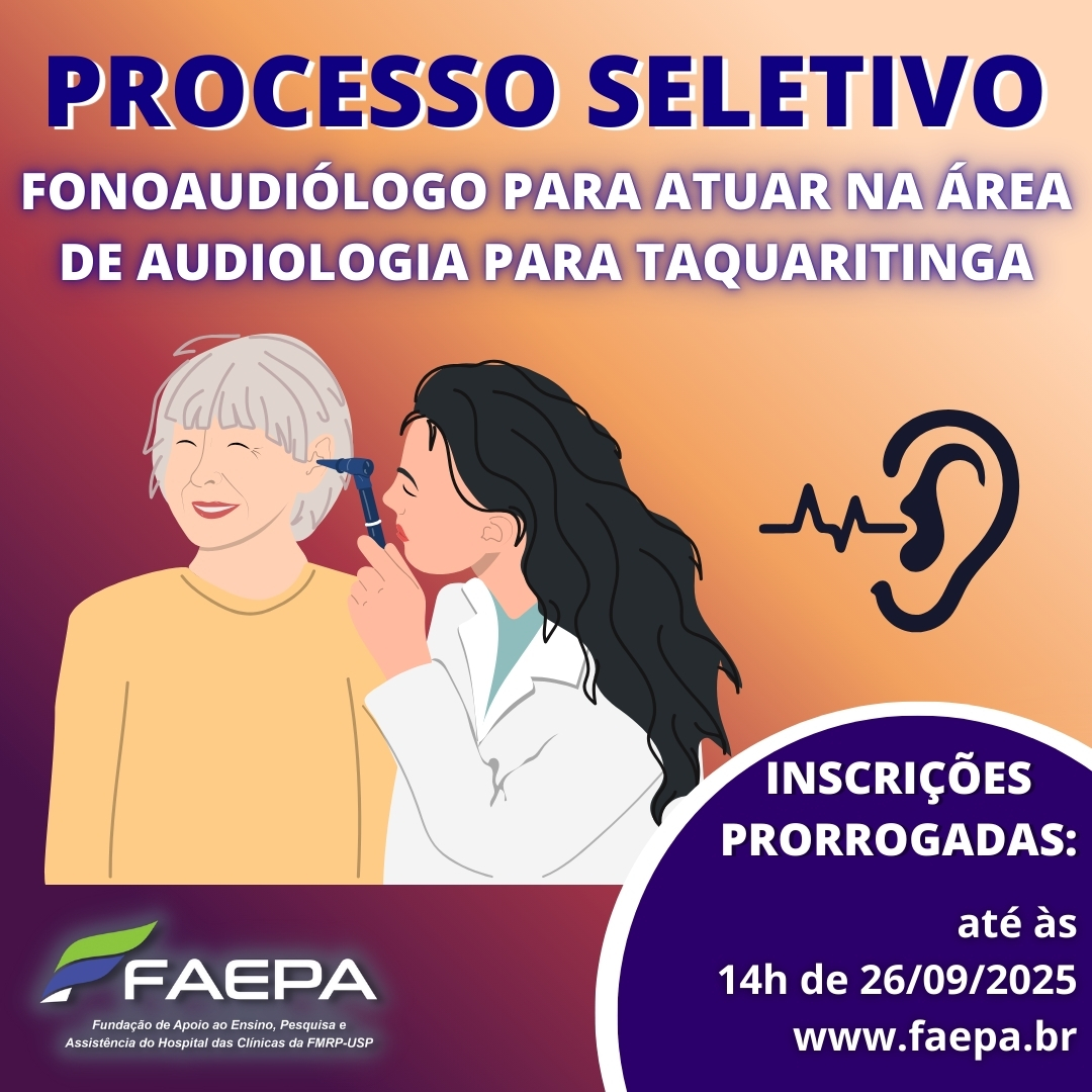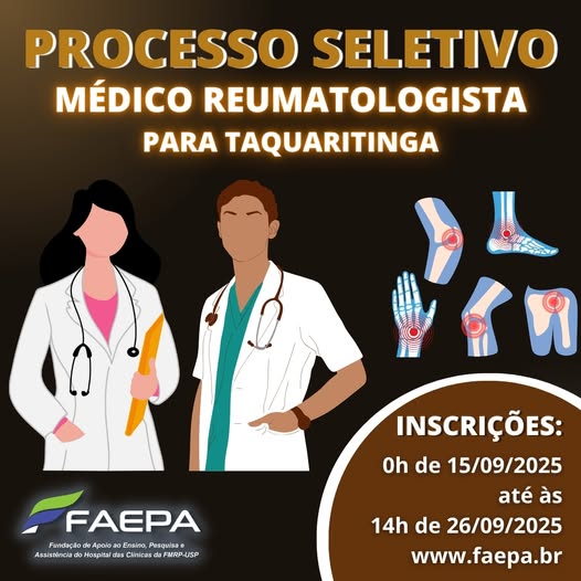 A Fundação de Apoio ao Ensino, Pesquisa e Assistência do Hospital das Clínicas da Faculdade de Medicina de Ribeirão Preto da USP (FAEPA) anunciou a abertura de processos seletivos para atuação em Taquaritinga. As oportunidades contemplam três áreas distintas da saúde: Fonoaudiologia (Audiologia), Medicina Reumatológica e Medicina Ortopédica.