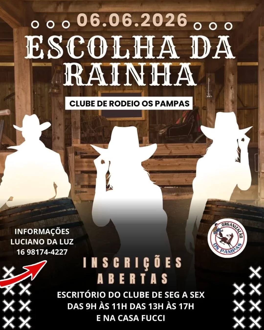 A organização do Clube de Rodeio Os Pampas abriu oficialmente as inscrições para a Escolha da Rainha 2026, marcada para o dia 6 de junho. A seleção, que tradicionalmente inaugura o período de preparativos para o rodeio, pretende valorizar a representatividade feminina no universo sertanejo e ampliar a participação da comunidade nas ações culturais promovidas pelo clube. As candidatas interessadas já podem garantir presença no concurso, que reúne público expressivo e integra o calendário de eventos do município.