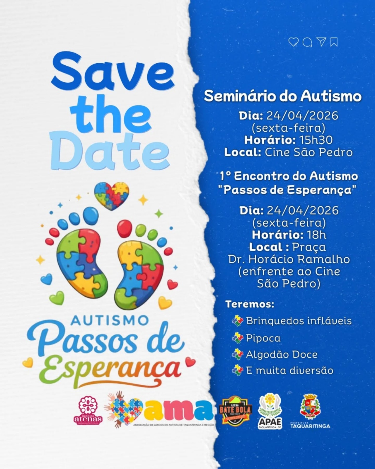 A realização do evento é fruto de uma parceria entre instituições locais, incluindo a Associação de Amigos do Autista (AMA), a APAE de Taquaritinga, o Instituto Atenas, o vereador Delo Bate Bola e a Prefeitura de Taquaritinga. Segundo os organizadores, a união de esforços evidencia o compromisso coletivo com a causa e amplia o alcance das ações de conscientização no município.