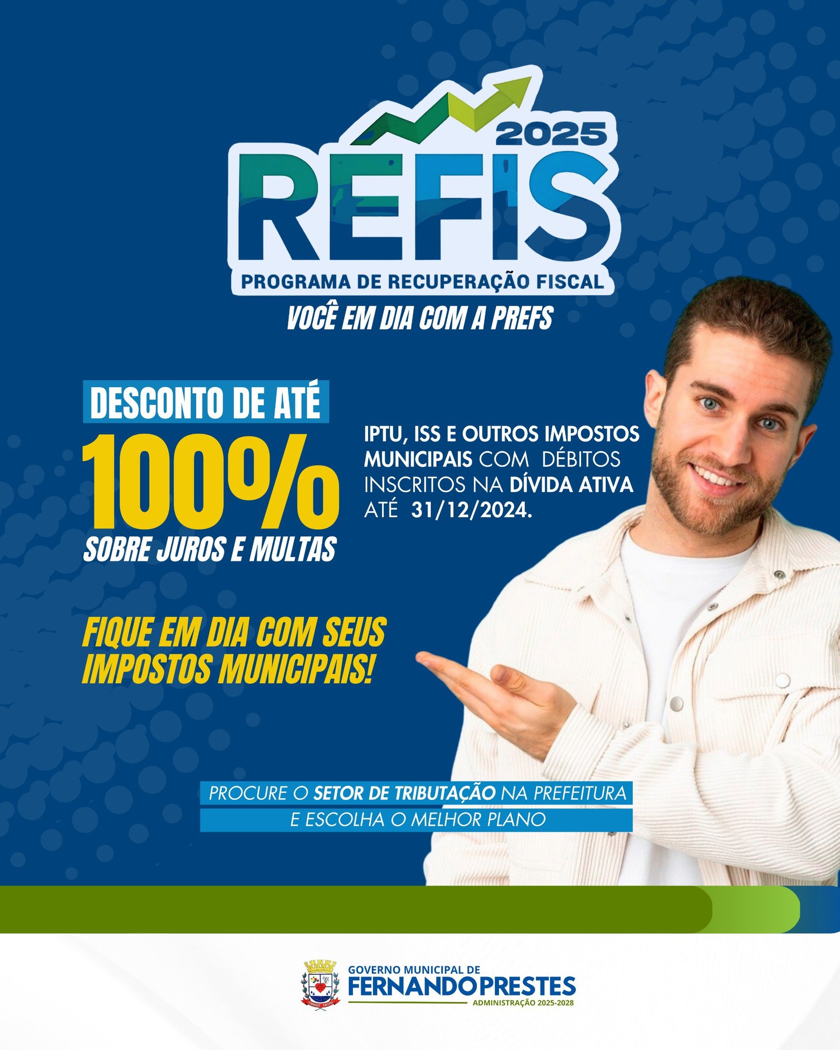 O município de Fernando Prestes iniciou o REFIS 2025, Programa de Recuperação Fiscal que busca auxiliar contribuintes na regularização de dívidas municipais. A iniciativa contempla IPTU, ISS e outros tributos.