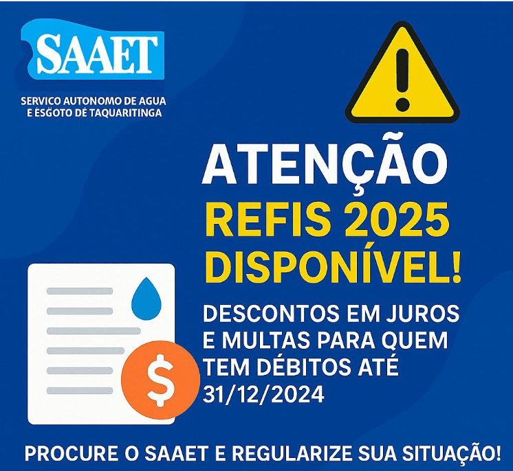 Descontos especiais em juros e multas facilitam a regularização de dívidas junto ao SAAET; programa já está em vigor e vale por tempo limitado