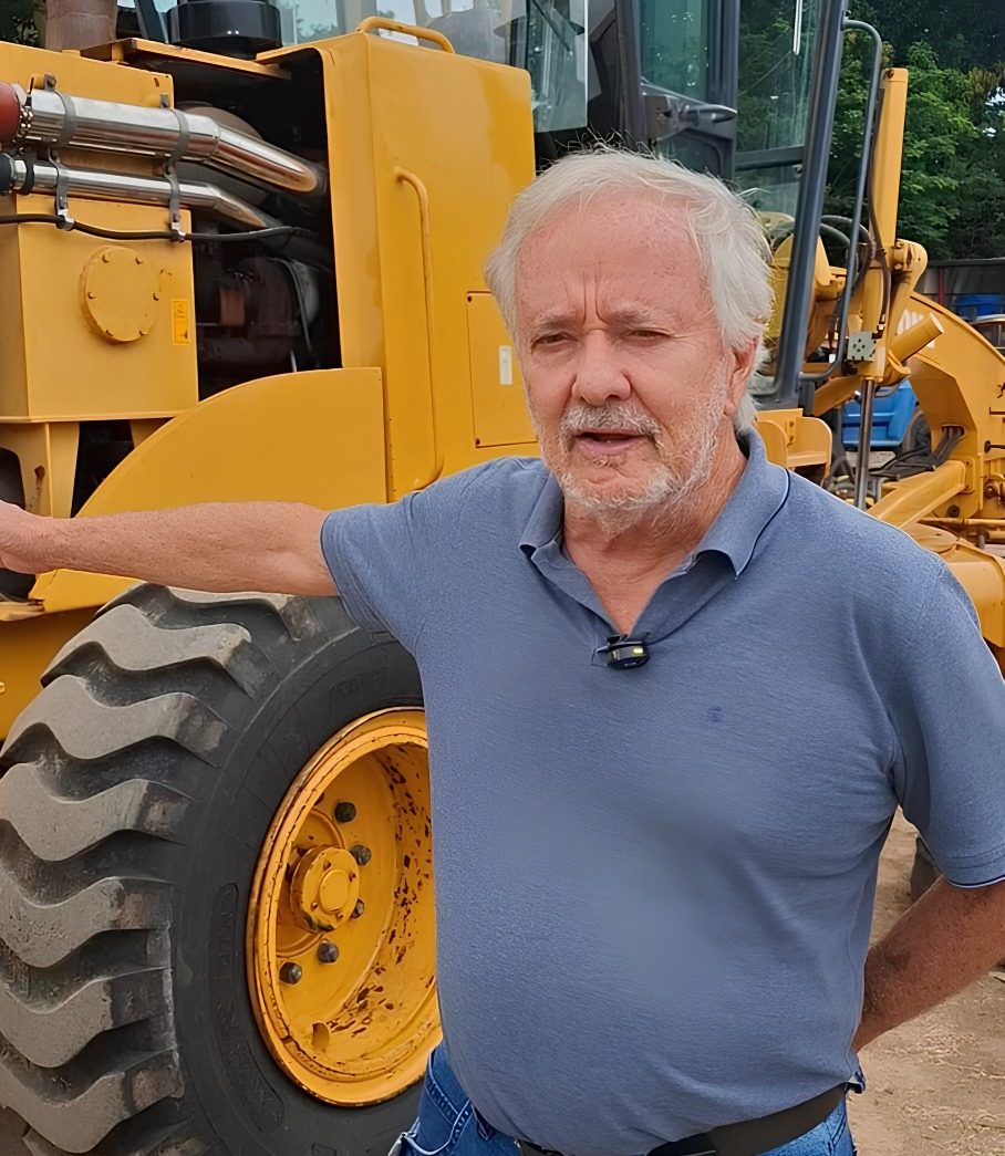 Ainda segundo ele, a recuperação do equipamento demonstra que havia condições de reaproveitamento. “Vocês veem pelo pneu aqui, ninguém ia gastar um pneu bom numa estrutura ruim”, disse, ao destacar aspectos da reforma realizada em uma motoniveladora, conhecida popularmente como “patrol”, utilizada em serviços de manutenção de estradas e obras públicas.
