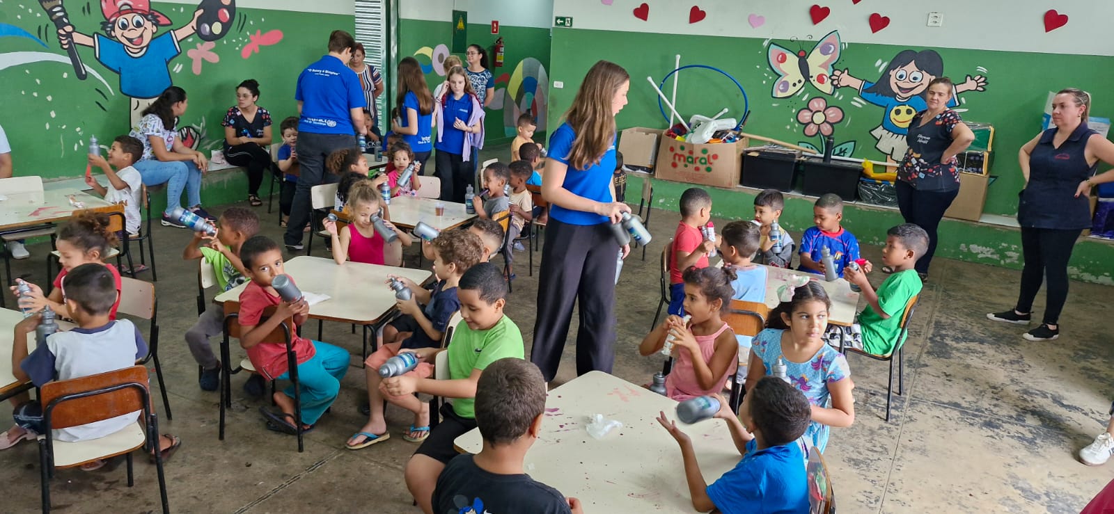 Para tornar o momento ainda mais especial, cada criança recebeu uma garrafinha squeeze como lembrança, gesto que simbolizou o cuidado e o afeto dos organizadores.