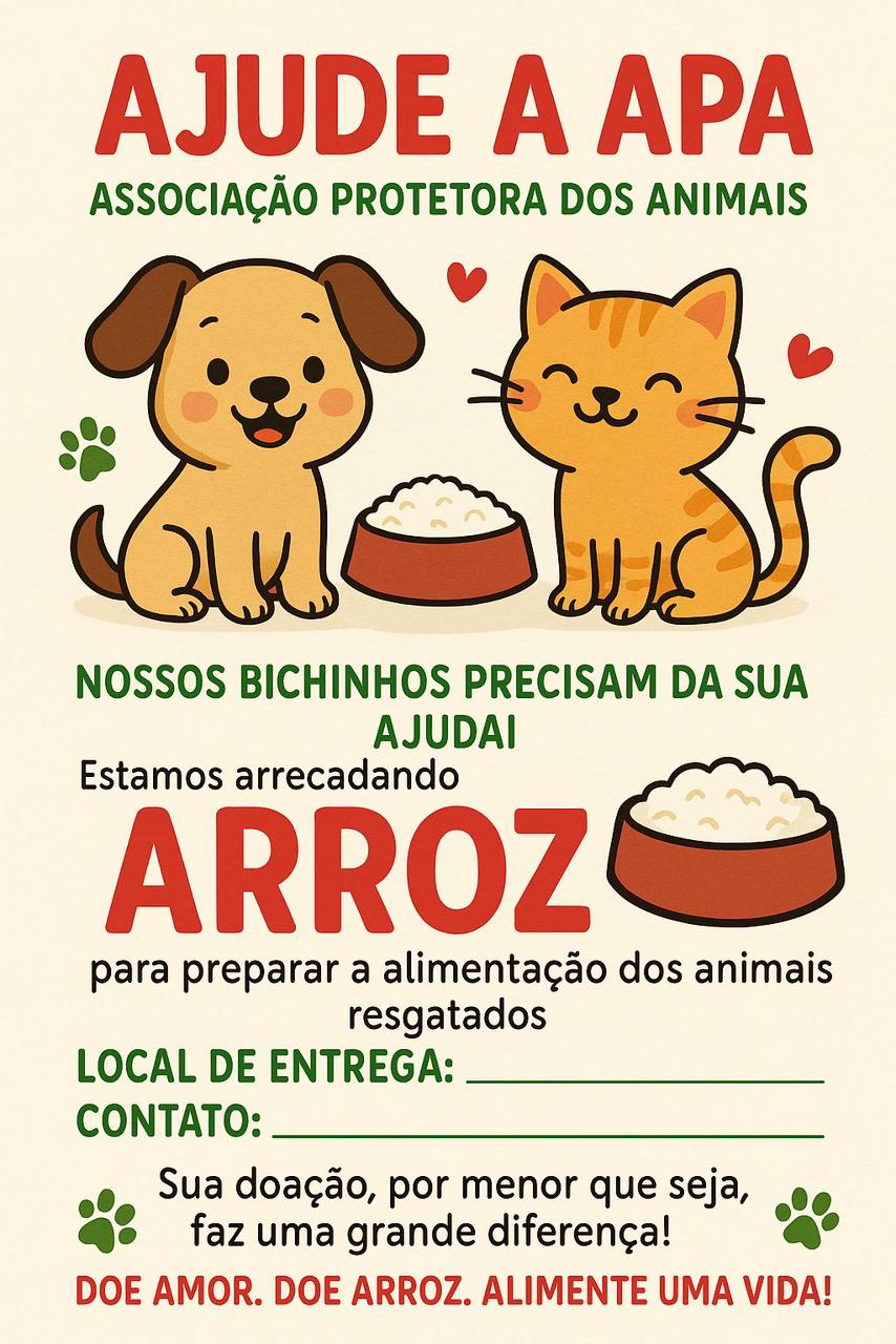 A mensagem central da iniciativa é clara: “Doe amor. Doe arroz. Alimente uma vida”. A frase resume o espírito da campanha, que busca despertar na população a consciência sobre a responsabilidade coletiva de cuidar dos animais em situação de vulnerabilidade.